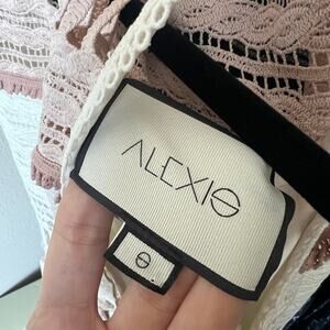 tags: alexis lace dress, fit and flare dress, cocktail dress, sleeveless mini dress, blush ivory dress, neutral colorblock dress, wedding guest dress, resort wear, boho chic style, luxury designer dress, spring summer dress, party dress, feminine lace outfit