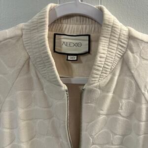 ALEXIS Perkins Women's White Velour Oversized Embossed Bomber Jacket Size XS
