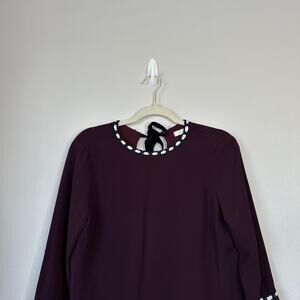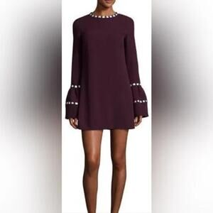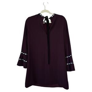 ALEXIS Rustam Ribbon-Trimmed Bell-Sleeve Shift Dress Plum Size Medium Autumn