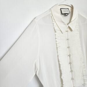 ALEXIS Silk Off White Blouse L Military Retro Inspired Quiet Luxury Office Party