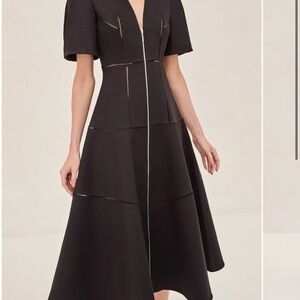 Introducing the Valry Dress, where modern minimalism meets effortless sophistication. This dress is all about clean lines and understated elegance, featuring subtle stitched detailing that adds depth and texture to its sleek silhouette. The structured fit and flared skirt create a flattering shape, while the zipper front gives it a contemporary edge.