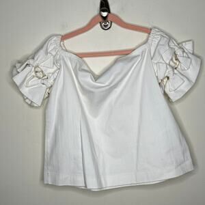 ALEXIS Weston Off Shoulder Bow Sleeve Top Ecru White Sz L {3G53}