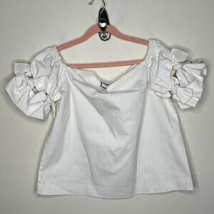 Alexis Weston off shoulder white cotton bow sleeve top 97% cotton 3% elastane