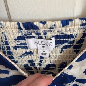 The Botanical Tie Strap Asymmetrical Hem Dress from ALEXIS for Target exudes the perfect balance of timeless style and modern flair for a lovely representation of designer Alexis Barbara Isaias' aesthetic. Cut in a midi length with a flowy silhouette, this sleeveless V-neck dress gets an extra touch of definition from an asymmetrical hem for graceful movement. Fashioned in white with allover blue botanicals blooming throughout, this dress gifts any wardrobe with a bold yet dreamy look.