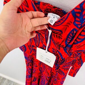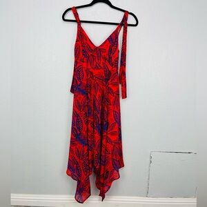 ALEXIS for Target Orange and Blue Botanical Asymmetrical Flowey Midi Dress