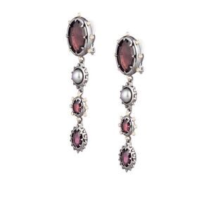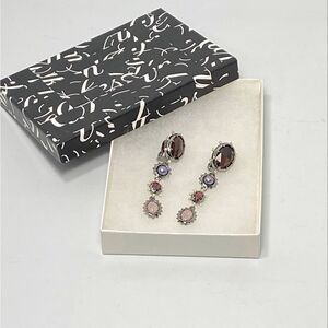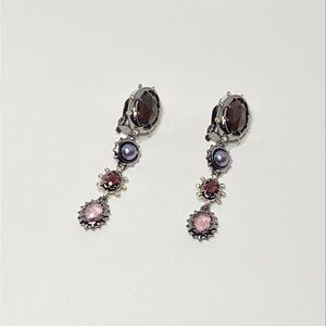 Stunning vintage-inspired drop earrings set with an assortment of sparkling gemstones, freshwaer peacock pearls and crystal accents.