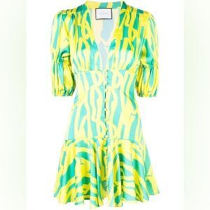 ALEXIS X REVOLVE green & yellow short sleeve Idun mini Dress in Citrus Gehry