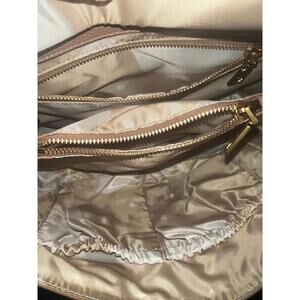 Hardware: Brushed gold alloy and YKK zips