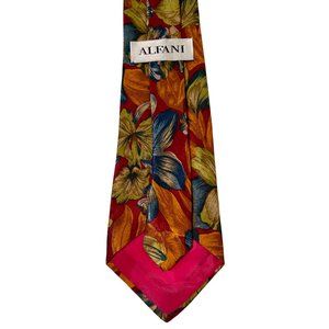 ALFANI 100% Silk Neck Tie | 55.5" | Burgundy Maroon Tropical Floral Print, Men's