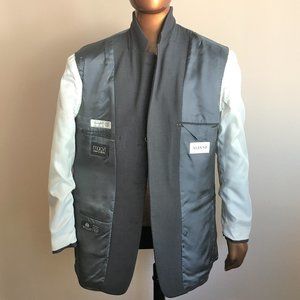 Deep Charcoal Wool Blazer. Three button, notched lapel, no vent. Barchetta breast pocket, Two additional exterior flap pockets (still sewn shut!) and three interior pockets.