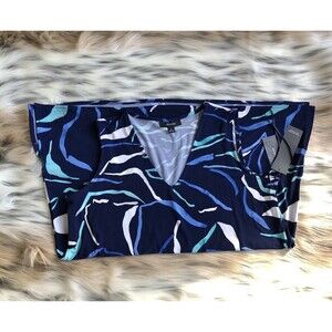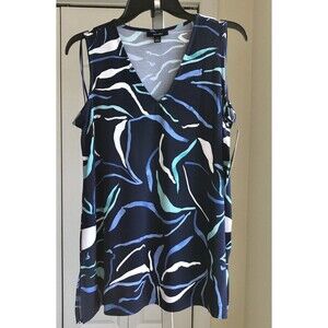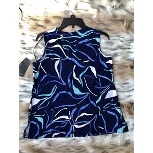 ALFANI BLOUSES TOP TUNIC SIZE SMALL SLEEVELES V-NECK BLUE PRINTED