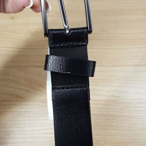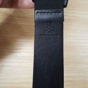 ALFANI Belt Mens Size Large 38 40 Black Faux Leather Stretch Silver Buckle
