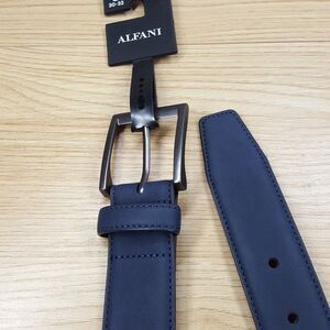 ALFANI Belt Mens Size Small 30 32 Blue Faux Nubuck Leather Classic Dress Casual
