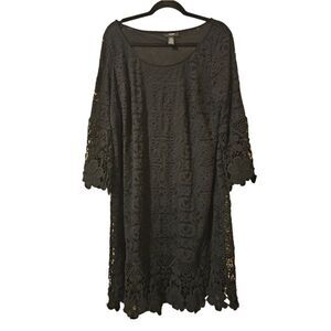 ALFANI Black Crochet-Trim Illusion Dress - Size 2X