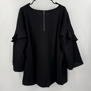 ALFANI Blouse Size 2X Ruffle Bell Sleeves Black NWT Plus Curvy Business Office