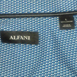 ALFANI - Blue Graphic Tiny Check Print - Button Up Shirt - LARGE