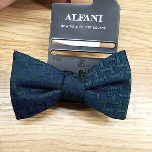 ALFANI Bow Tie Blue Green Grid Geometric Pattern