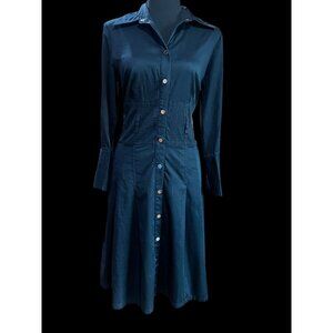ALFANI ButtonUp Long Sleeve Fit & Flare Dress WOMEN, MED Navy Blue Pleated Skirt