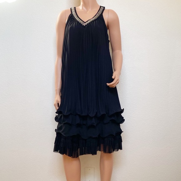 ALFANI COCKTAIL RUFFLE PLEATED FORMAL BLACK DRESS