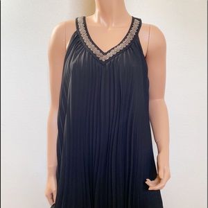 Beautiful Ruffle Pleated Party Dress. Loose Fit - V-Neck with beaded Silver design. Sits Below Knee.