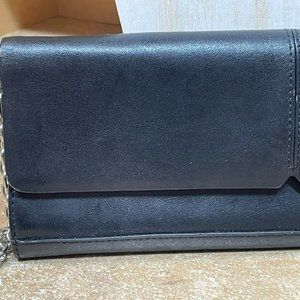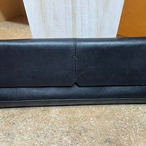 ALFANI LEATHER BLACK HEAVY LEATHER ENVELOPE STYLE 3 SECTION FLAT CLUTCH PURSE