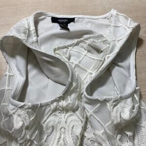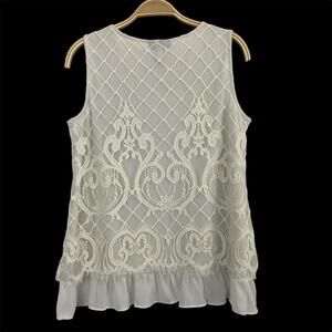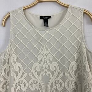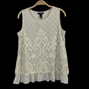 ALFANI Lace Overlay Tank Top Women PM Cream Quilted Flapper Fringe Regency Royal