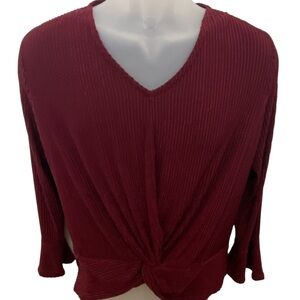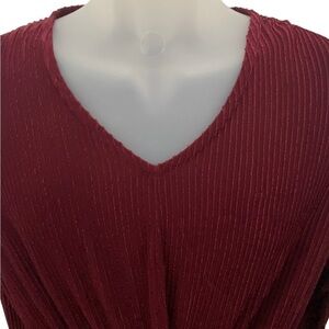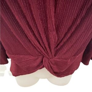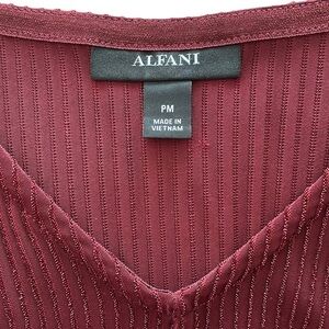ALFANI Maroon Poly Metallic Blouse Twist Blouse Top Women PM Petite Medium