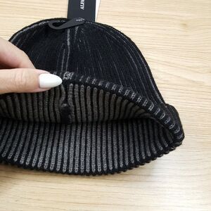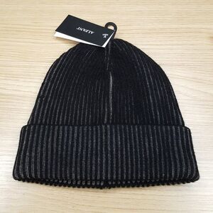 ALFANI Mens Beanie Hat Black Ribbed Fold Over Cuffed Stretch Knit