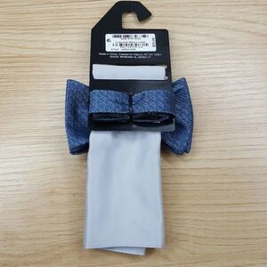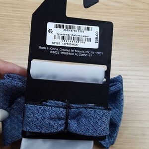ALFANI Mens Bow Tie Blue Geo Medallion & Solid Light Blue Pocket Square Set