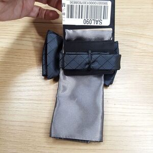 ALFANI Mens Bow Tie Gray Diamond Textured Pre-Tied & Satin Pocket Square Set