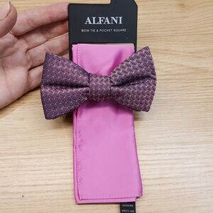 ALFANI Mens Bow Tie & Pocket Square Mauve Textured Geo Pink Satin Pre-Tied