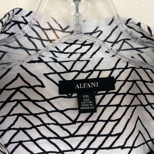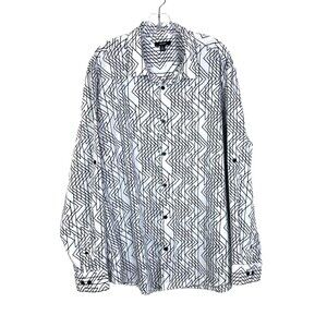 ALFANI Men's Button Up Shirt Size XXL Black White Geometric Roll Tab Sleeve