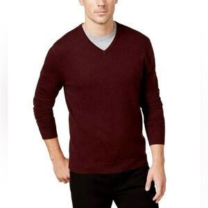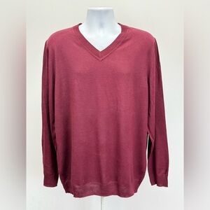 ALFANI Men's Cranberry Merino wool blend V-Neck Sweater size XL