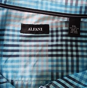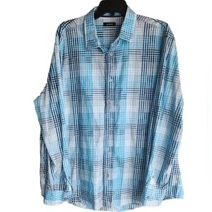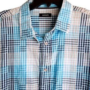 ALFANI Men's Dress Shirt Regular Fit Long-Sleeve Button-Down Blue Plaid Size 2XL