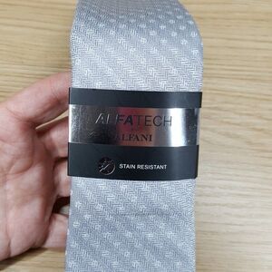 ALFANI Mens Neck Tie Silver Gray Herringbone Stripe Stain Resistant