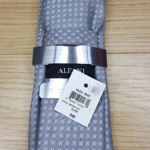 ALFANI Mens Neck Tie Silver Gray Woven Micro Dot Geometric Textured Slim Classic