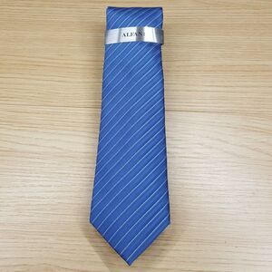 ALFANI Mens Neck Tie Tan Blue Stripe Classic Pointed