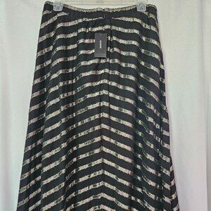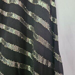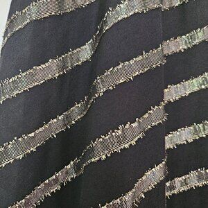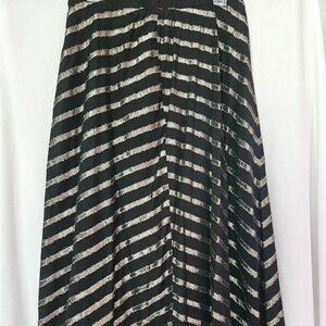 Alfani black and gold pleated metallic-stripe chevron fully lined skirt. Shimmering asymmetrical stripes are the aesthetic in this skirt by Alfani with a midi length and an A-line silhouette with pleats.