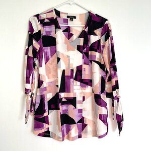 ALFANI Printed Tie Sleeve Blouse Pink Purple Geometric 3/4 Sleeve PETITE Medium