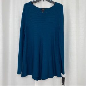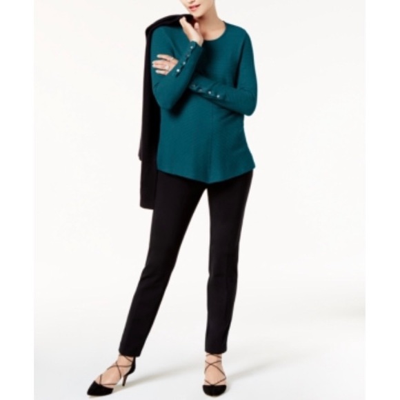 ALFANI Ribbed Snap-Detail Sweater in Teal with Black Embellishments on Sleeve. NWT.