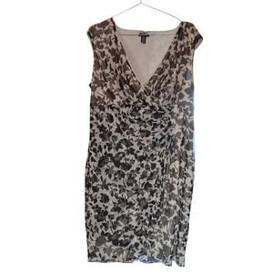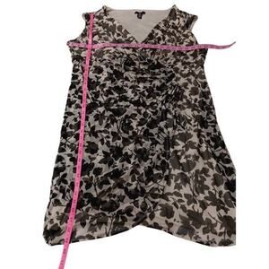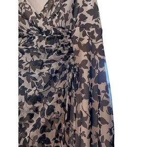 ALFANI Ruched Faux Wrap Dress Floral Plus Size 18W Black Off White V-Neck