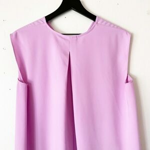 Alfani sleeveless dress is so airy and flowy! size M. High Low hem and back pleat for great drape and movement. Pretty purpley pink color. Polyester.