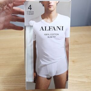 ALFANI Shirt Mens XXL White 4-Pack V-Neck T-Shirt 100% Cotton Slim Fit