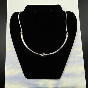 ALFANI Silver Tone Knot Collar Necklace. Shiny necklace is collar style choker and measures approx 20" + 3" extender chain. This is a beautiful Alfani Knot necklace and like new and probably unworn. Has original tag which has been pulled off, doesn't show any wear or scratches and is very shiny. #34