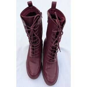 ALFANI WOMENS BLAIR LACE UP LUG SOLE BOOTIES WINE SMOOTH SIZE 8.5M RED. Shoes are in excellent pre owned condition.