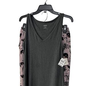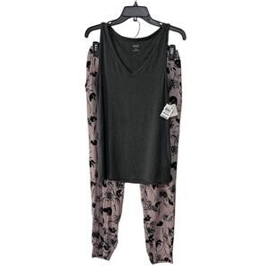 ALFANI WOMENS MEDIUM MODAL PAJAMA MIX SET GRAY TANK TOP & PINK FLORAL JOGGER