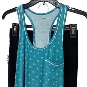 ALFANI WOMENS PAJAMAS MODAL SET TANK TOP TEAL & LEGGINGS CLASSIC BLACK SIZE XS