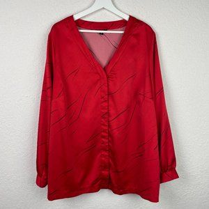 ALFANI Womens 3X Red V-Neck Silk Like Hidden Button Down Blouse Long Sleeves