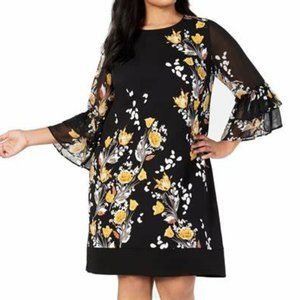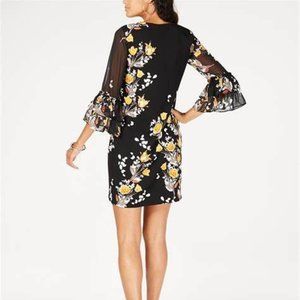 ALFANI Womens Black Tiered Mesh Sleeve Floral Print Jewel Neck Size 4