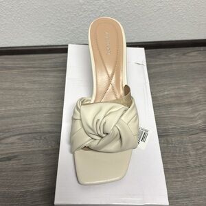 ALFANI Womens Ivory Knotted Strap Cushioned Niah Square Toe Kitten Heel Slip On Dress Heeled Sandal
